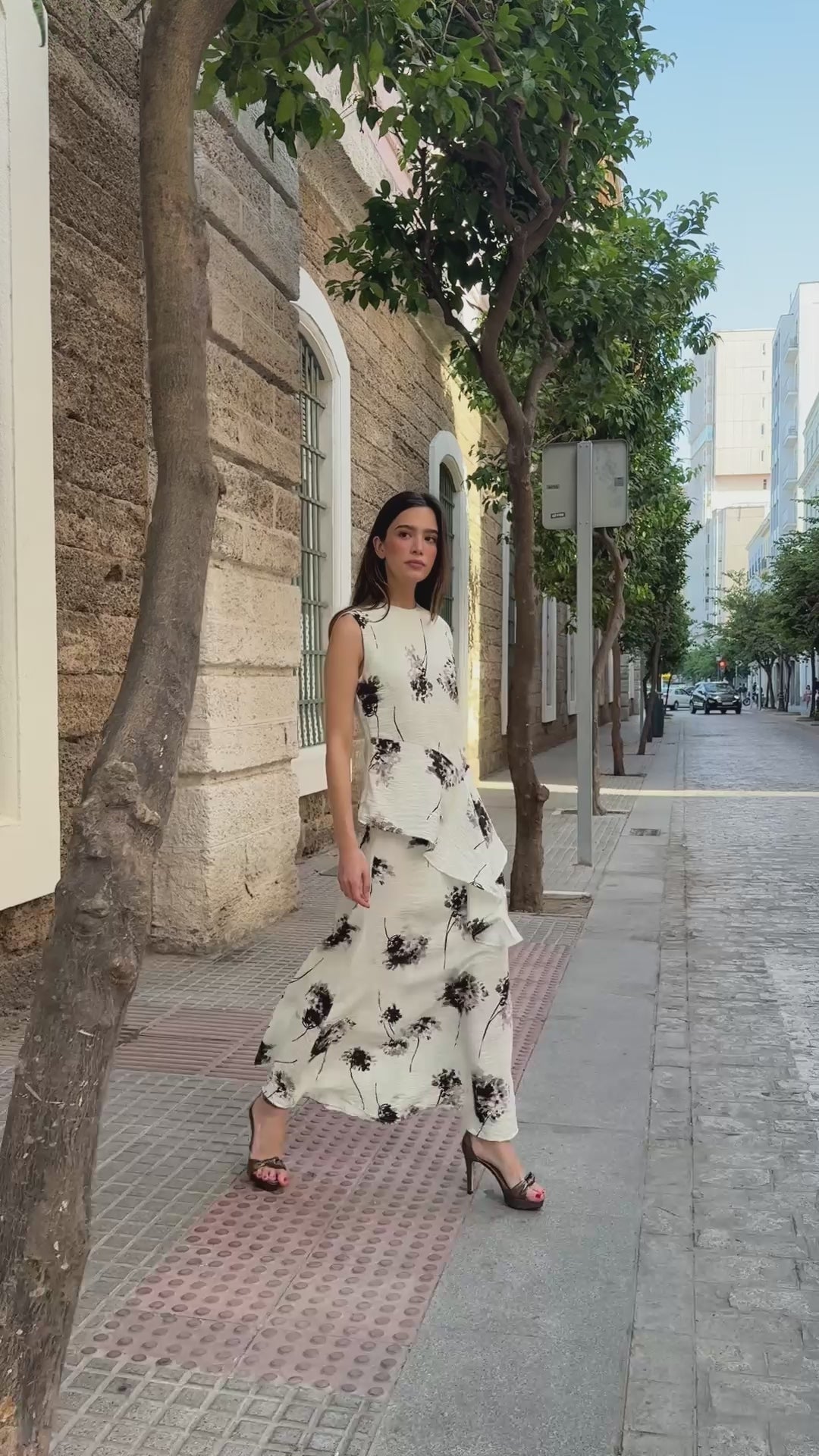 El Top Lavinia combina un diseño con un favorecedor volante asimétrico que aporta movimiento. Su estampado floral en tonos neutros lo convierte en una opción elegante y fácil de combinar.